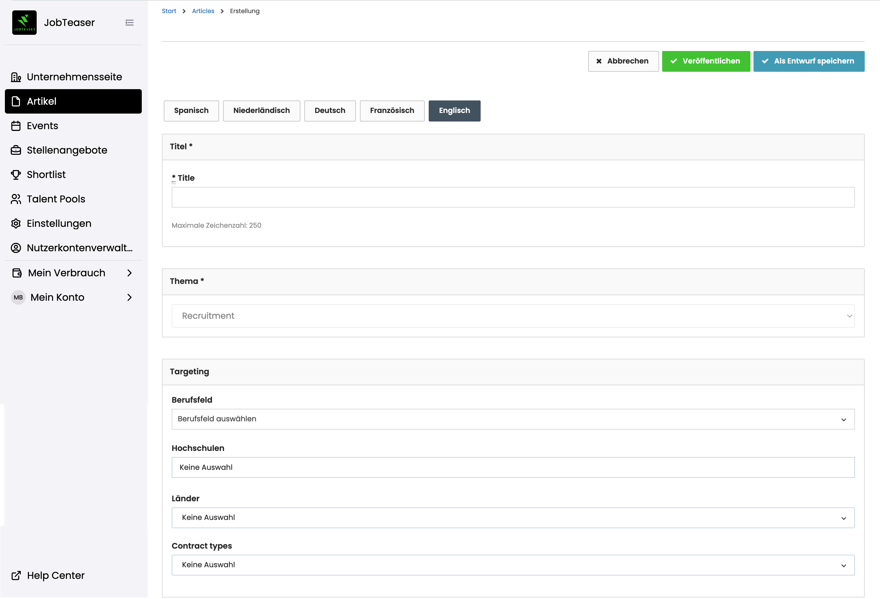 Wie erstelle ich eine Push Com für eine Recruitingkampagne?