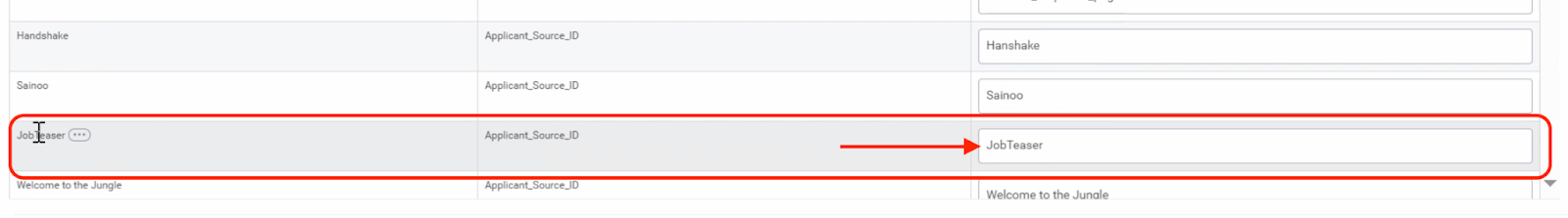 When a candidate applies through a URL that contains a source parameter that matches the reference ID of a recruiting source in this list, Workday hides the "How Did You Hear About Us?" dropdown and automatically populates this recruiting source for the candidate's application.