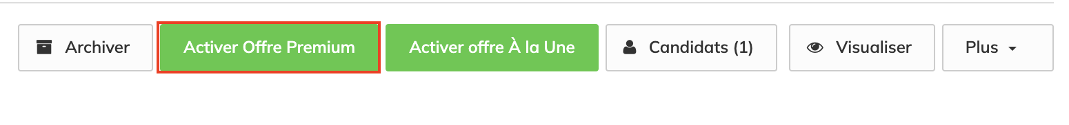 Pour transformer l'offre en annonce premium, il vous suffit de vous rendre sur l'offre d'emploi en question et de cliquer sur « Activer Offre Premium ». Si vous ne voyez pas ce bouton, veuillez contacter notre équipe Customer Experience l'adresse hello@jobteaser.com pour obtenir de l'aide.
