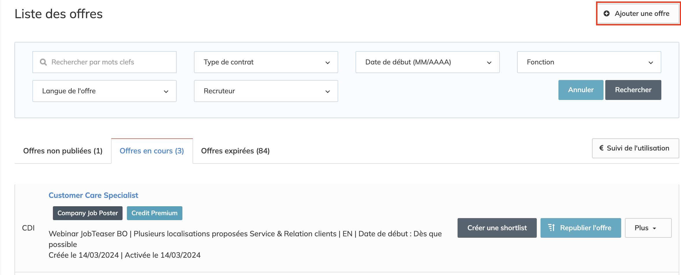 1. Créez ou sélectionnez votre offre d'emploi.