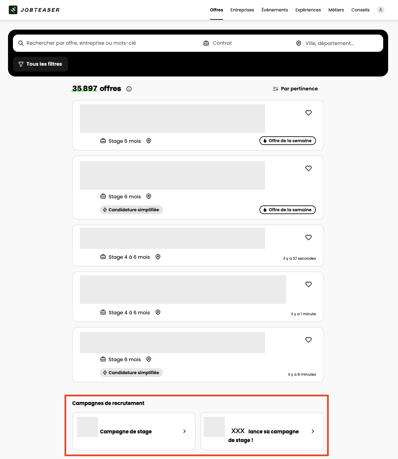 - dans l'onglet "Offres" sur jobteaser.com
