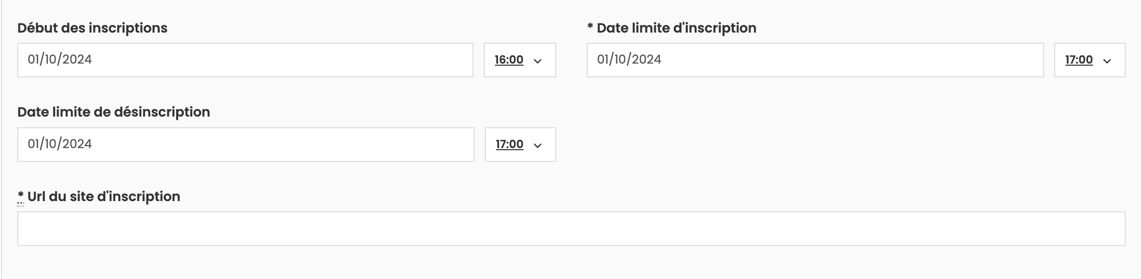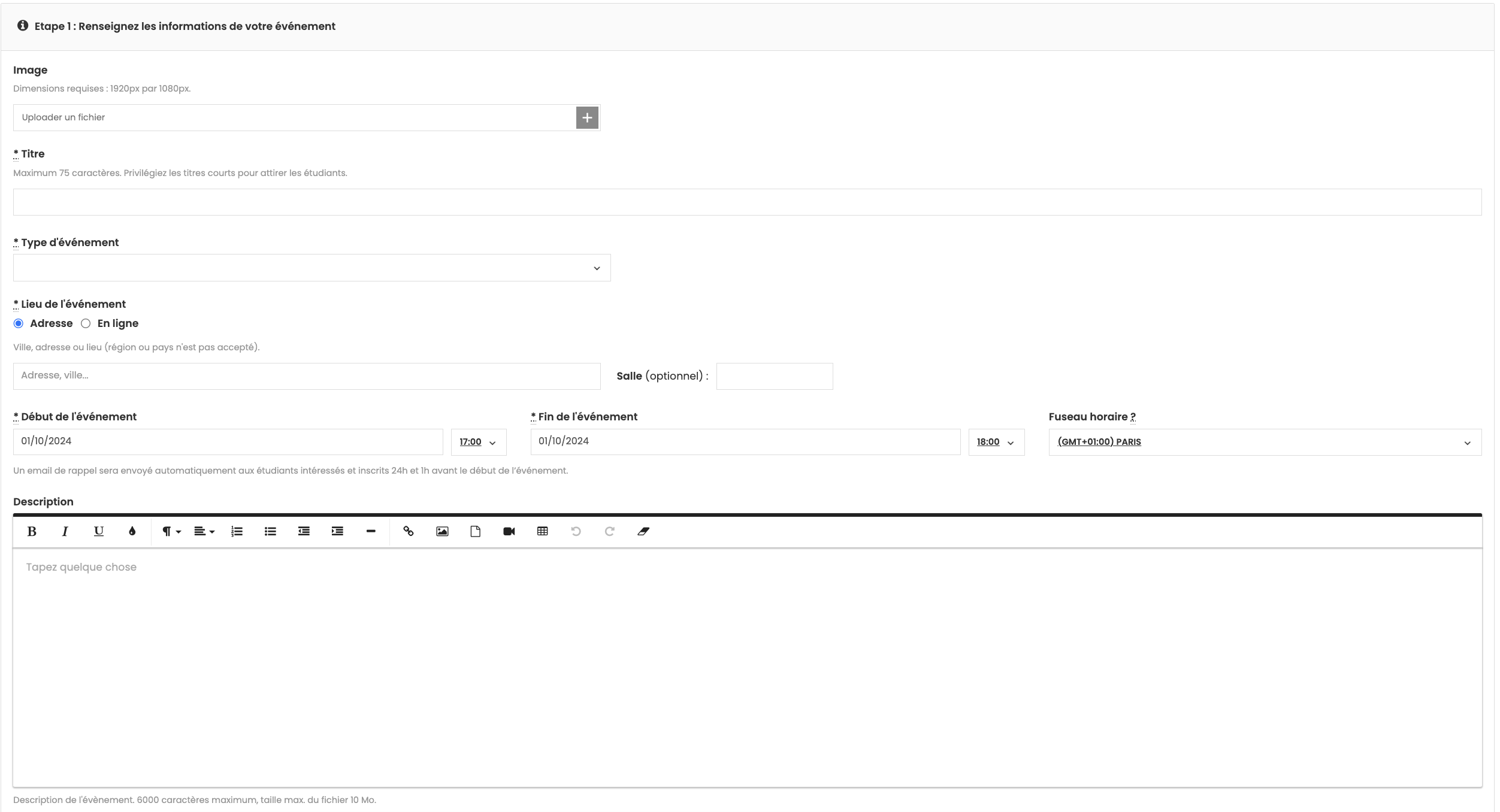 - Date/heure de début et de fin : Assurez-vous que les dates sont correctes, surtout si votre événement se déroule sur une seule journée.