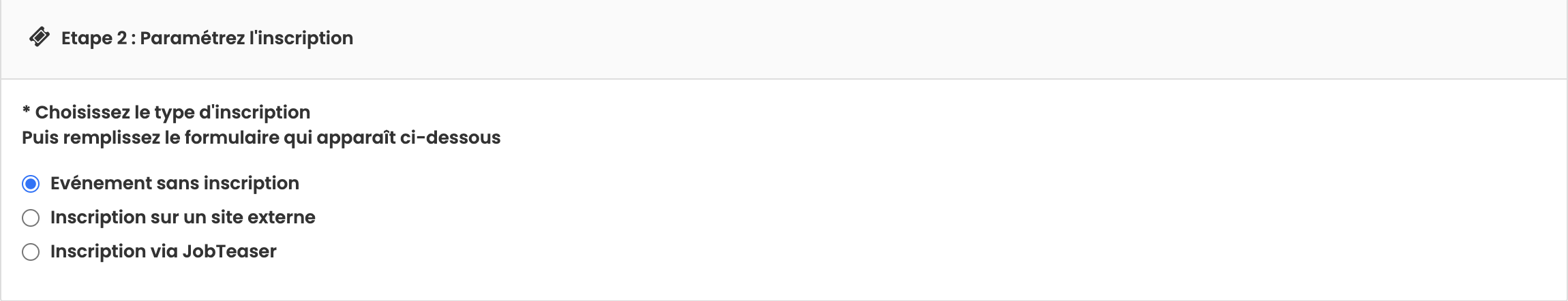 Lorsque cela vous est demandé, choisissez « un événement de recrutement ».