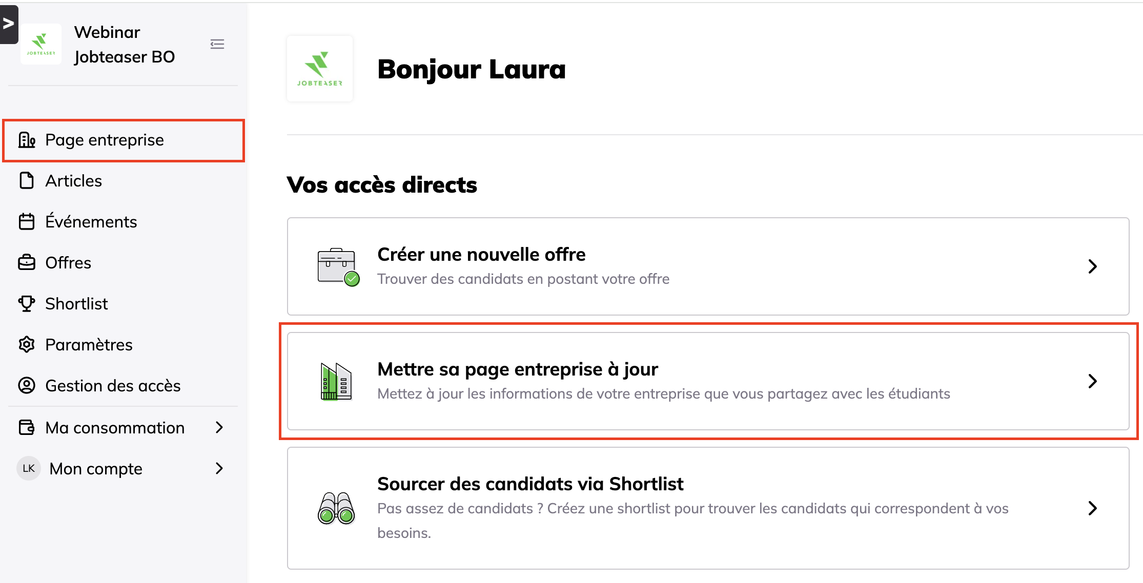 Avant de commencer, vérifiez quel type de back office et de page entreprise vous avez sur JobTeaser.